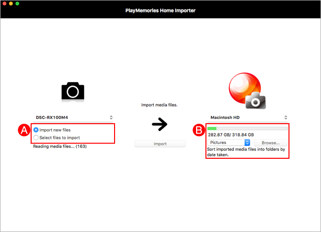 Start PlayMemories Home. When your Mac recognizes a camera or memory card, [PlayMemories Home Importer] is displayed.